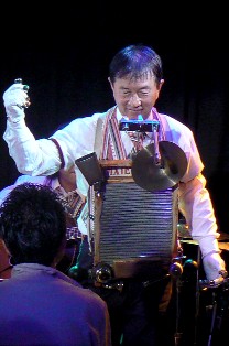 2006年7月24日 浅草HUB ステージ中央に置かれた 薗田さんの遺影と ミルウィとトロンボーン クリックすると大きくなります |