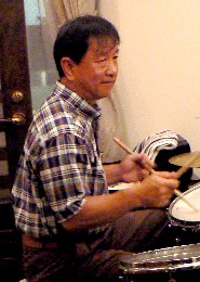 さてさて、今回のメンバーは、中川さん(Tp)・後藤さん(Cl)・中島さん(Tb)・深澤さん(Pf)・田野さん(B)・T具知さん(Bj)の面々。(角度的に、どうしても深澤さんが写らなくて・・・ごめんなさいm(__)m) お天気はイマイチでしたが、夏らしくとっても暑くなったこの日、さらに熱いデキシーランドジャズで盛り上がりました。夏らしく、素敵な浴衣姿のお客様もいたりして良い雰囲気(^^)。 中川さんは、いつも通りの飄々としたMCの中にも、ニューオリンズで演奏した時のお話などしてくれました。客席とのコミュニケーションも和やかに、浩ちゃんのドラムソロを始めメンバー各自のフィーチャーを織り交ぜつつ、とっても楽しいライブでした。 途中、やはり薗田さんのお話なども挟みつつ、ラストはニューオリンズ風の葬送。神の御許に、鳥のように自由に、そして聖者の行進。いろんな取り合わせがあるものなのですね。 USAGIは今回はお手伝い(^^;。受付したり、飲み物を用意したり、テーブルを片付けたり・・・座ってゆっくり聞けたのは数曲でしたが、今夜も楽しいひと時でした。
