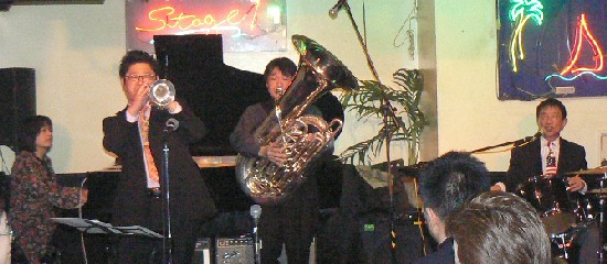 º£·î¤ÏÄÁ¤·¤¯·îÃæ¤Î¿åÍËÆü¤È¤Ê¤ê¤Þ¤·¤¿¡¢Dixie Angel¤ÎÀÖºä¥é¥¤¥Ö¡Á1st¥¹¥Æ¡¼¥¸¤Ï¢öI Got Rhythm¤«¤é»Ï¤Þ¤ê»Ï¤Þ¤ê¡Ê¡°¡°¡Ë/½ª¤ï¤Ã¤Æ¹À¤Á¤ã¤ó¤ÎMC¡Ö¤¤¤ä¡Á¡Á¡Á¤¤¤¤´¶¤¸¤Ç¤¹¤Í¤¨¡£¤¤¤¤¥á¥ó¥Ð¡¼¤¬Â·¤Ã¤Æ¤¤¤ë¤«¤é¡¢¤â¤¦²¿¤Ç¤â¤Ç¤¤Þ¤¹¡×¤È¥á¥ó¥Ð¡¼¤ò¸«ÅϤ¹¤È¡¢°ì¿Í¾®¿¹¤¯¤ó¤¬Èù̯¤Êɽ¾ð(¾Ð)µÒÀʤξФ¤¤òͶ¤¤¤Ä¤Ä¡¢¤Á¤ã¤ó¤È²¿¤Ç¤â¤ä¤Ã¤Æ¤¯¤ì¤ë¤Î¤Ï¤µ¤¹¤¬¤Ç¤¹¡£¢öOver the Waves¤Ï¡¢¤ª¾î¤µ¤ó¤Î·ëº§¼°¤Ç±éÁÕ¤·¤¿¶Ê¤À¤½¤¦¤Ç¡¢¤Á¤ç¤Ã¤È¥Û¥í¥ê¤Ê¹À¤Á¤ã¤ó¡£»×¤¤½Ð¤·¤Á¤ã¤Ã¤¿¤«¤Ê¡©ËÜÆü¤Î¿·¶Ê(?)¤Ï¢öFrom Russia With Love¡£007¥·¥ê¡¼¥º1963ǯºîÉʤμçÂê²Î¤Ç¤¹¤Í¡£¤Ê¤ó¤Ç¤â¤â¤È¤Ï007/´íµ¡°ìȯ¤È¤¤¤¦Ë®Âê¤À¤Ã¤¿¤Î¤ò¡¢¶Ê¤¬¥Ò¥Ã¥È¤·¤¹¤®¤Æ¥í¥·¥¢¤è¤ê°¦¤ò¹þ¤á¤Æ¤ËÊѤ¨¤¿¤ó¤À¤È¤«¡Ê¡÷¡÷¡Ë²»³Ú¤ÎÎϤϰÎÂç¤Ê¤Î¤Ç¤¹¡£ÅÓÃæ¤«¤é¥Ç¥¥·¡¼¥¢¥ì¥ó¥¸¤Î±éÁդǡ¢¤È¤Ã¤Æ¤â¿·Á¯¢ö¡£¹À¤Á¤ã¤ó¤Î007¤Îé¥Ãߤâ¤Ê¤«¤Ê¤«¤Ç¤·¤¿¡ä¡ä007¤Ë¤Ä¤¤¤Æ¾Ü¤·¤¯¤Ï¤³¤Á¤é(¾Ð) 2nd¥¹¥Æ¡¼¥¸¤Ï¡¢¥ê¥¯¥¨¥¹¥È¤Ë¤ª±þ¤¨¤·¤ÆÀé¹á¤µ¤ó¥Õ¥£¡¼¥Á¥ã¡¼¤Ç¢öTo Love Again¤«¤é¡£¥¹¥Æ¡¼¥¸¤âÃæÈפޤǿʤߎ¥Ž¥Ž¥¼¡¤Î¶Ê¾Ò²ð¤Ç¤¤¤¤Ê¤ê¹À¤Á¤ã¤ó¤¬¡Ö¤½¤ì¤Ç¤Ï¡ªÆüËܤ¬À¸¤ó¤ÀÀ¤³¦¤Î¥¹¡¼¥Ñ¡¼¥¹¥¿¡¼¤ò¤´¾Ò²ð¤·¤Þ¤·¤ç¤¦¡ª¾®¿¹¿®ÌÀ¡ª¡×¤È¾®¿¹¤¯¤ó¤ò»ý¤Á¾å¤²¤À¤¹Ž¥Ž¥Ž¥²¿¤ò¤ä¤é¤µ¤ì¤ë¤Î¤«¤ÈÉ԰¤²¤Ê¾®¿¹¤¯¤ó(¾Ð)¢öSugar Blues¤È¶Ê̾¤òʹ¤¤¤Æ¾¯¤·¤Û¤Ã¤È¤·¤¿ÍͻҤǡ¢¤´µ¡·ù¤Ê±éÁÕ¤òʹ¤«¤»¤Æ¤¯¤ì¤Þ¤·¤¿¡£ 2nd¥é¥¹¥È¤Ï¡¢Tuba¤È¥É¥é¥à¥Õ¥£¡¼¥Á¥ã¡¼¤Ç¡¢ÂԤäƤޤ·¤¿¡ª¢öDark Eyes¡ªÞտȤΥí¥ó¥°¥½¥í¡Ê¡°¡°¡Ë¤ó¡Á¤«¤Ã¤³¤¤¤¤¡ª¡ª¡ª 3rd¥¹¥Æ¡¼¥¸¤Ç¤Ï¡¢¤¤¤í¤¤¤í»ö·ï¤¬µ¯¤³¤ê¤Þ¤·¤¿(¾Ð)ºÙ¤«¤¤¤Î¤Ï¾Ê¤¯¤È¤·¤Æ(¾Ð)¹À¤Á¤ã¤ó¤âBBS¤Ë½ñ¤¤¤Æ¤¤¤¿¡¢ÉèÌÌÂçÁܺ÷»ö·ï(Çú)¡£¡ÖÀé¹á¤Á¤ã¤ó¤âËͤ饤¤Ê¶Ê¤ò¤ä¤Ã¤Æ¤¯¤ì¤¿¤È¤³¤í¤Ç(¥Ô¥¢¥Î¥½¥í¤Ç¢öMaple Leaf Rag)¤Ä¤Å¤¤¤Æ¤Ï¤³¤ì¤âËͤ¬Âç¹¥¤¤Ê¶Ê¢ö¿À¤Î¸æµö¤Ë¤ò¤ä¤ê¤¿¤¤¤È»×¤¤¤Þ¤¹¡£¥³¥â¤Á¤ã¤ó¤Î¤È¤³¤ËÉèÌÌÃÖ¤¤¤Æ¤¢¤ë¤«¤é¡×¤È¤³¤³¤Ç¾®¿¹¤¯¤óϵÇâ¡¢¤Ò¤È¤·¤¤êÉèÌÌÂæ¤òõ¤·¤Æ¡Ö¤¤¤ä¡¢¤Ê¤¤¤Ã¤¹¡Ê¡÷¡÷¡Ë¡×¡Ö¤½¤ó¤Ê¤³¤È¤Ê¤¤¤Ç¤·¤ç¤¦¡Á¡Ê¡°¡°¡¨Â¾¤Î¿Í¤Î¤È¤³¤Ë¤¢¤ë¤«¤Ê¡©¡×¤ÈÁ´°÷¤ÇÁܺ÷³«»Ï(¾Ð)¡£¤Ç¤â¤Ê¤¤Ž¥Ž¥Ž¥¹À¤Á¤ã¤ó¤È¾®¿¹¤¯¤ó¤Ï¡¢¼«Ê¬¤Î¥«¥Ð¥ó¤ÎÃæ¤Þ¤Çõ¤¹¤±¤É¤ä¤Ã¤Ñ¤ê¤Ê¤¤¡Ê¡°¡°¡¨¤³¤Î´ÖÌó5ʬ¡£ºÇ½é¤ÎÁ´°÷Áܺ÷¤¬½ª¤ï¤Ã¤Æ»Ä¤ê¤Î3ʬȾ¤¯¤é¤¤¤Ï¡¢°æ·å¤¯¤ó¤¬¥Þ¥¤¥¯¤Ë¸þ¤«¤Ã¤Æ¤µ¤µ¤ä¤¯¤è¤¦¤ËÉèÌÌÁܺ÷¤Î¼Â¶·Ãæ·Ñ(¾Ð)¤ò»Ï¤á¤¿¤ê¤·¤Æ(¾Ð)¥Ê¥¤¥¹¥Õ¥©¥í¡¼¤Ç¤·¤¿¡Ê¡°¡°¡Ë¡£ºÇ½ªÅª¤Ë¤ÏÀé¹á¤µ¤ó¤¬¾®¿¹¤¯¤ó¤Ë¤¶¤Ã¤È¶µ¤¨¤Æ¥ê¡¼¥É¤ò¼è¤ê¤Ä¤Ä̵»ö(¡©)±éÁÕ¤¹¤ë¤³¤È¤¬¤Ç¤¤Þ¤·¤¿¤¬¡¢¤ä¤ë¦¤ÏÂçÊѤÀ¤Ã¤¿¤³¤È¤Ç¤·¤ç¤¦¡Ê¡°¡°¡¨¸«¤Æ¤ëÊý¤Ï·ë¹½ÌÌÇò¤«¤Ã¤¿¤Ç¤¹¤¬(¥¹¥ß¥Þ¥»¥óm(_ _ )m¡Ë ¥é¥¹¥È¤Ï¢öÀ»¼Ô¤Î¹Ô¿Ê¡ª¤¨¡Á¡ª¡©º£Æü¤Ï¤¤¤²¤Ã¤Á¤ã¤ó¤Î¥¤¥Ê¥Ð¥¦¥¢¤Ê¤·¡©¤È»×¤Ã¤¿¤é¡¢¥»¥¤¥ó¥Ä¤Ç¤·¤Ã¤«¤ê¥¤¥Ê¥Ð¥¦¥¢¤ò·è¤á¤Æ¤¯¤ì¤Þ¤·¤¿(¾Ð) Stage-1¤Î¹À¤Á¤ã¤ó¤Î¥Ð¥ó¥ÉÀ찲μêS¤µ¤ó¤Î²Î(¥Õ¥©¥í¡¼¤Ç1¶Ê¿¤¯²Î¤Ã¤Æ¤â¤é¤¤¤Þ¤·¤¿(¾Ð))¤Ë¡¢¤¤¤í¤¤¤í»ö·ï¤âµ¯¤³¤Ã¤Æ(¾Ð)Îä¤ä´À¤«¤¯¤ä¤é¡¢¾Ð¤¦¤ä¤é¡¢¥¹¥Æ¡¼¥¸¤âµÒÀʤâÂçÀ¹¤ê¾å¤¬¤ê¤ÎÀÖºä¤ÎÌë¤À¤Ã¤¿¤Î¤Ç¤·¤¿¡Á¡Ê¡°¡°¡¨