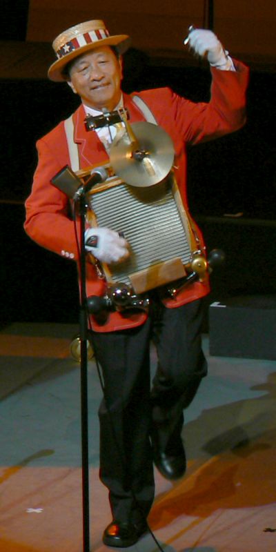 BBSより転載 ********** 楠堂でーす!(^0^)/ 来て頂きましたお客様、本当に応援有難うございました! 上の写真を借りまして^^;厚く御礼申し上げます。 いろいろ言いたい事は山ほど有りますが、来月のメッセージにまとめて書きたいと思います^^;勉ちゃんのリーダー見習い勝手に私が付けたのですが^^;まぁ良かったのではないでしょうか!これから頑張ってリーダーとしての勉強をしてもらって、来年には素晴らしいリーダーとして皆様の前に立ってもらうように、本人が努力し、又僕も力になってあげるつもりです。 ウォッシュボードのスタンディングオベーション^^;有難うございました^^; 素晴らしいお客様に囲まれ、今日もい楽しく演奏することが出来ました(^^)/そして素晴らしいスタッフの皆さん有難うございました。メンバーの皆さんご苦労様! 最後に花岡詠二さん!森サカエさん!ステージを盛り上げてくださって感謝しております。さすがお二人とも大ベテラン、そして大御所!参りましたm(_ _ )m ^^;(^^)/