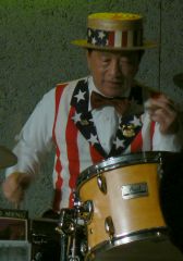 BBSより転載(^ω^)b ******************* 相変わらずの、満員のお客様、有り難うございましたm(_ _ )m 落語の「看板のピン」で、『最近、目がかすんできたし、耳も遠なった^^;誰か兄貴の金を預かっている奴はおらんか!』と言うくだりが有りますが、ドラムを叩いているせいか、最近耳が難聴気味になって来てこの日は失敗をやってしまった^^;勉君が僕のほうを向いて「次は…行きます」胸に両手をあて動かしていました。何を言ってるか分からなかったのですが、僕はてっきりウォッシュボードだと思い、曲が終わると同時にウォッシュボードのセッティングに行きました!ところが勉はSing×3とアナウンス^^;約束事で胸に手をやればウォッシュボードということにしていましたが、勉は胸でドラムソロをやって僕に意思表示したらしい^^;(そんな事は初めて)。メンバーも勉はSing× 3と言いましたよ!と冷たいお返事^^;輪をかけて突っ込んできたメンバーも…!堪りかねてステージで言っちゃいましたが、もっと先輩を敬う気持ちが欲しいもんですね「あの仕草は間違うよ」とか「もっとはっきり言わないと!」とか^^;気を使ってほしいもんです。でもそれだけ耳も悪くなってきている証拠^^;これも音楽家としての宿命かも(;;)楽しい事も有りましたよ!どうしてもウォッシュボードを聞きたいと言うカップルが2組がおりまして、お誕生日だったと言う事も有りましたから機嫌を直して^^;やって上げたら喜んでくれました(^0^)/そんな訳で無事にステージも終了!楠堂さん、お疲れさんでした^^;メンバーの皆さんもご苦労さん! 【独り言】サリーちゃんのアレンジ、もう少し手を加えなければ^^; |